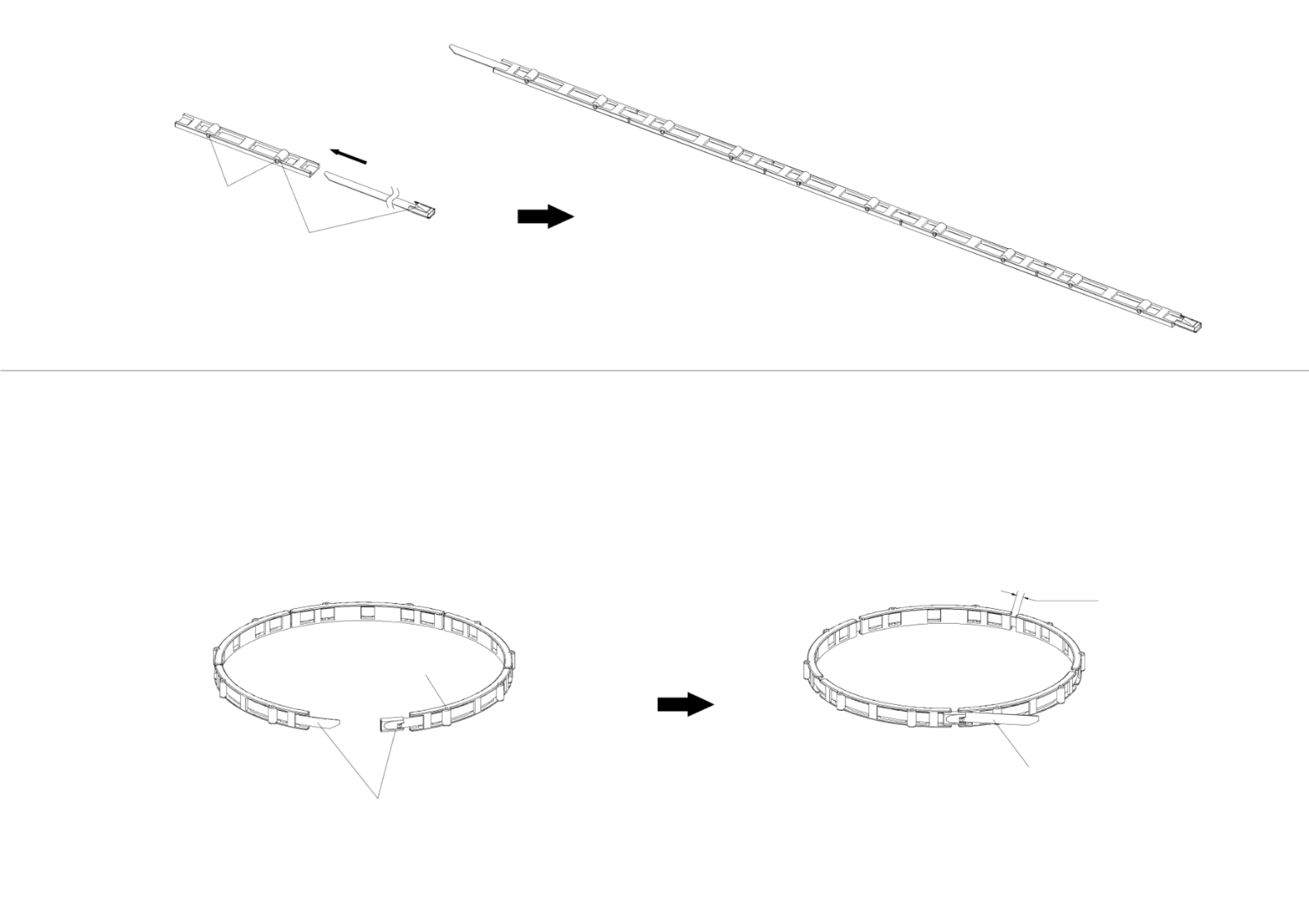 1. Prepare the Spike Holders: Insert a metal zip tie through each spike holder, ensuring that the holes are facing upward.