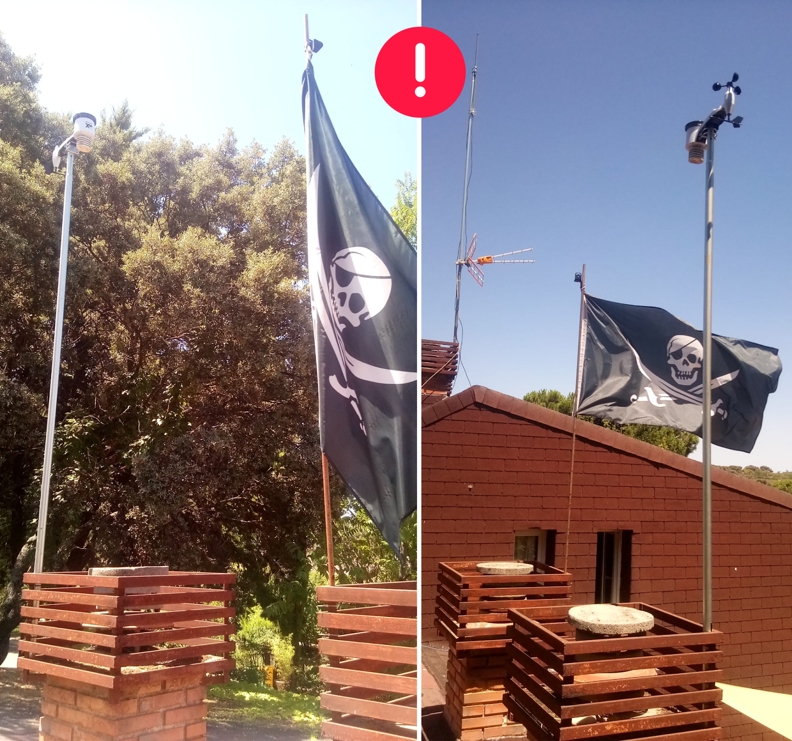 The outdoor sensor should be placed on a higher mast (at least a 2m one) over the wooden structure. If there are higher buildings etc around, the sensor should be moved at the highest possible point (always using a at least 2m mast).