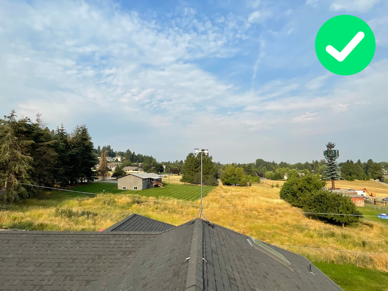 The user moved the outdoor sensor higher by ~1m increasing the distance-height ratio (distance from obstacle/ height of obstacle-height of outdoor sensor) from 2 to 3. In such a case there’s no better solution than that. Ideally, the mast should be 4-6m above the roof, but the maintenance may not be a safe job.