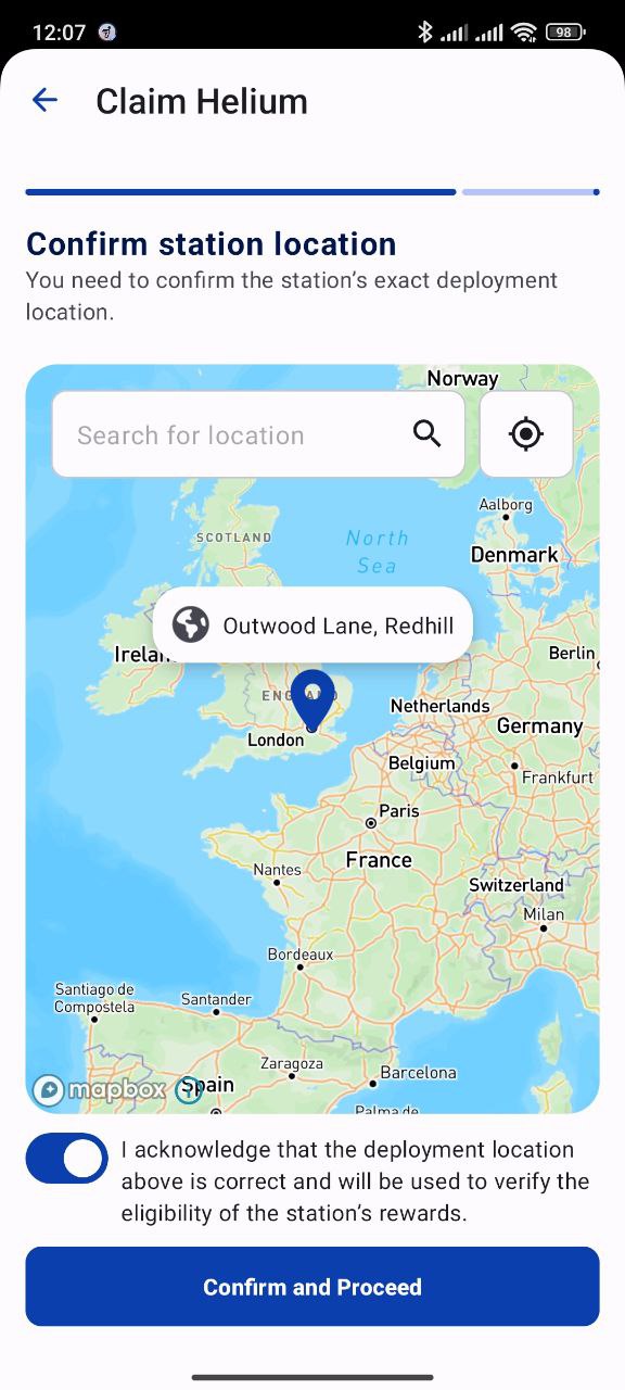 Once you've found the right location, tap on the checkbox to acknowledge the correctness of the installation location and then tap on "Confirm and Proceed" button.